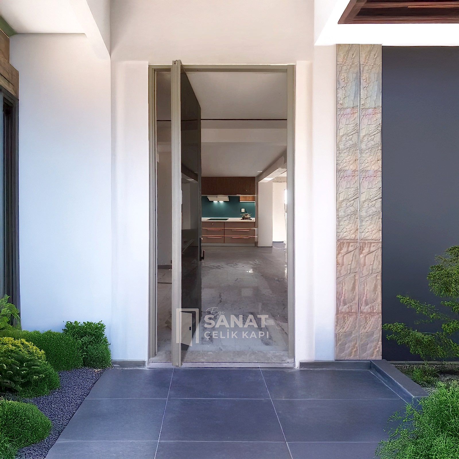 Siyah Boyalı Temperli Cam – Doğal Taş
